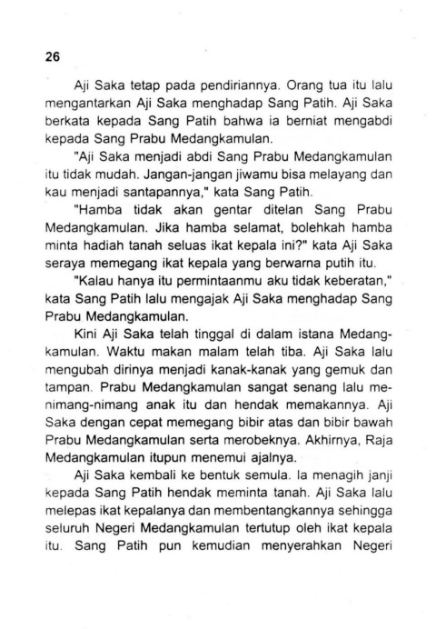 minta hadiah tanah seluas ikat kepala ini?" kata Aji Saka