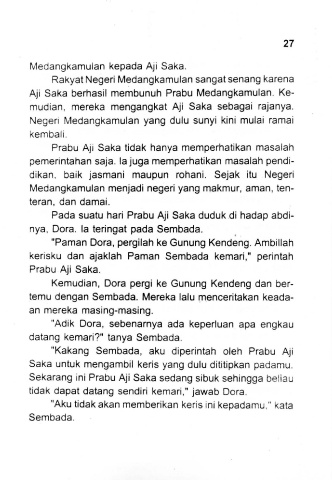 Pad a suatu hari Prabu Aji Saka duduk .di hadap abdi-