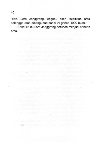 40 "dan. Loro Jonggrang, engkau akan kujadikan area sehingga area dibangunan eandi ini genap 1000 buah." Seketika itu Lora Jonggrang berubah menjadi sebuah area.