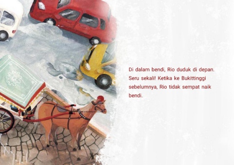 Di dalam bendi, Rio duduk di depan. Seru sekali! Ketika ke Bukittinggi sebelumnya, Rio tidak sempat naik bendi.