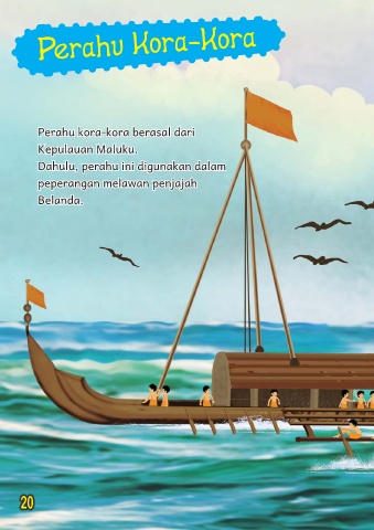 Perahu kora-kora berasal dari Kepulauan Maluku. Dahulu, perahu ini digunakan dalam peperangan melawan penjajah Belanda. 20