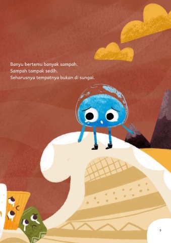 Banyu bertemu banyak sampah. Sampah tampak sedih. Seharusnya tempatnya bukan di sungai. 9