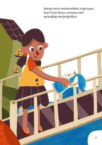 Warga mulai membersihkan lingkungan. Saat itulah Banyu terbebas dari perangkap menjengkelkan. 19