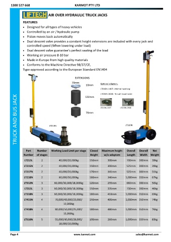 Part Number Working Load Limit per stage Closed Maximum height Overall Overall Net