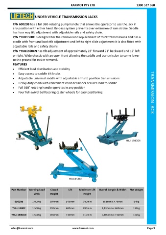 P/N YHUJ1500C is designed for the removal and replacement of truck transmissions and has a