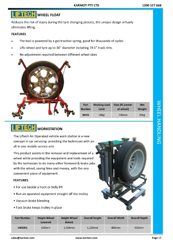 Lifts wheel and tyre up to 36” diameter including 19.5” truck rims