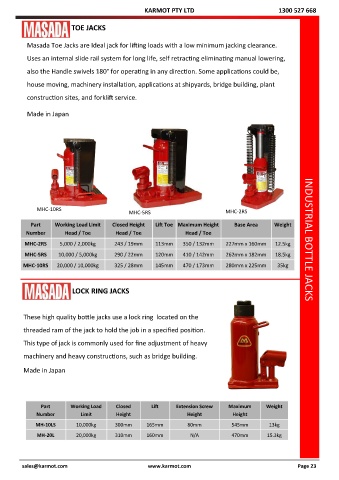 MHC-2RS 5,000 / 2,000kg 243 / 19mm 113mm 350 / 132mm 227mm x 160mm 12.5kg INDUSTRIAL BOTTLE JACKS
