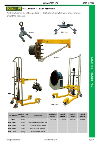 For the safe removal and transportation of disc brake callipers, hubs, disc brakes or drums