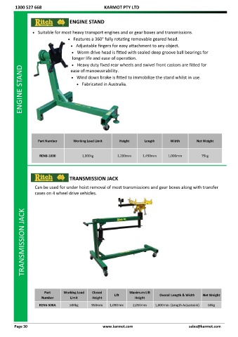 ENGINE STAND Wind down brake is fitted to immobilize the stand whilst in use.
