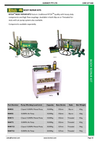 RITCH BODY REPAIR KITS feature: traditional RITCH TM quality with heavy duty