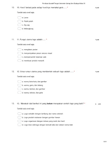 10. 10. Huruf fantasi pada setiap hurufnya memakai garis ....... * 4 poin