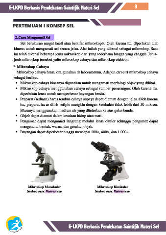 khusus untuk mengamati sel secara jelas. Alat inilah yang dikenal sebagai mikroskop. Saat