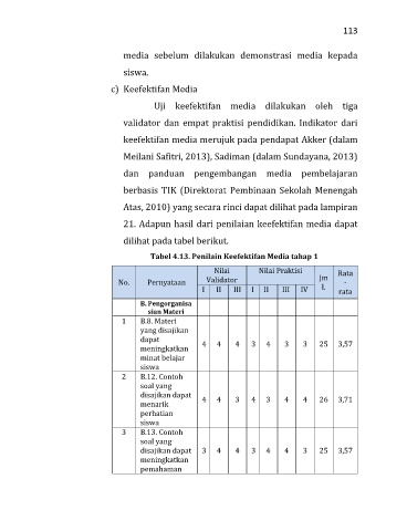 Tabel 4.13. Penilain Keefektifan Media tahap 1