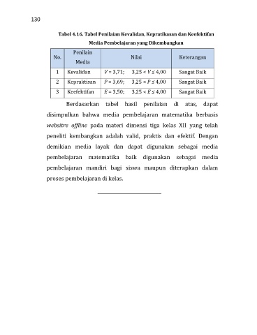 Tabel 4.16. Tabel Penilaian Kevalidan, Kepratikasan dan Keefektifan