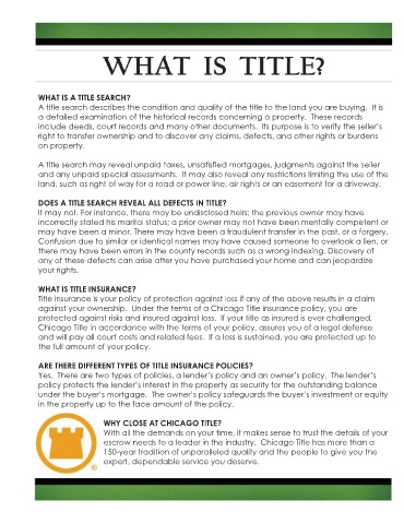 Chicago Title in accordance with the terms of your policy, assures you of a legal defense