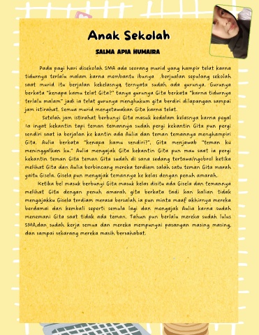 Pada pagi hari disekolah SMA ada seorang murid yang hampir telat karna