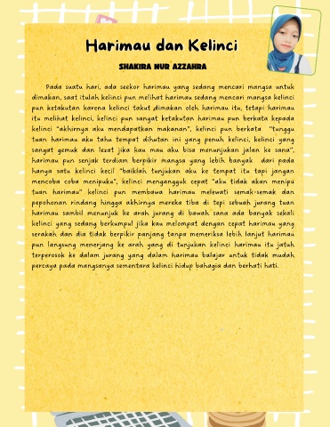 dimakan, saat itulah kelinci pun melihat harimau sedang mencari mangsa kelinci