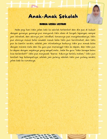 bisa terlambat?” Udin pun menjawab “karna tidurnya terlalu malam,” Udin pun