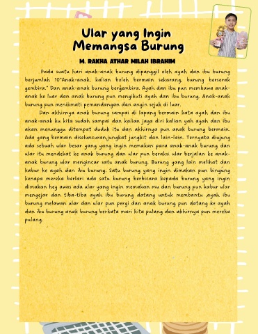 ada sebuah ular besar yang yang ingin memakan para anak-anak burung dan