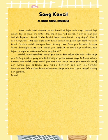 kalian bertengkar"ucap rusa, kancil pun berkata “Si singa nya sombong dan