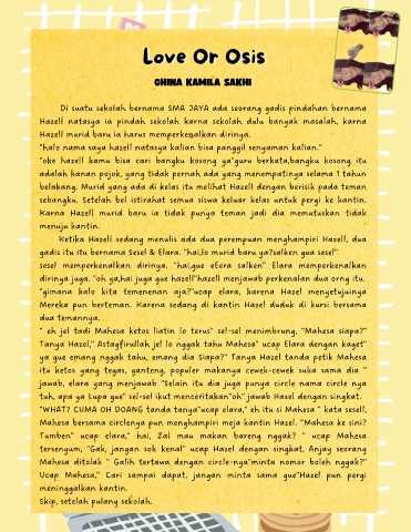 dirinya juga. "oh ya,hai juga gue hazell"hazell menjawab perkenalan dua orng itu.