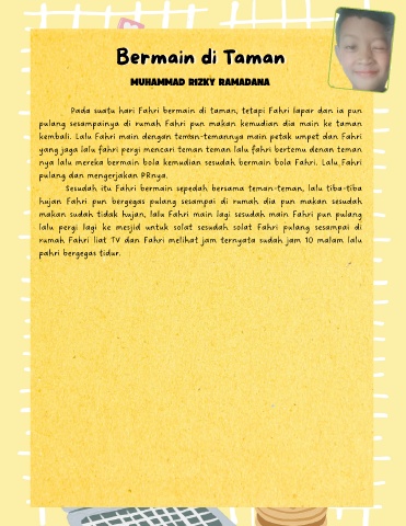 Pada suatu hari Fahri bermain di taman, tetapi Fahri lapar dan ia pun