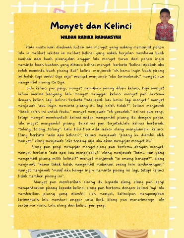 boleh meminta buah pisang itu?” kelinci menjawab “oh kamu ingin buah pisang