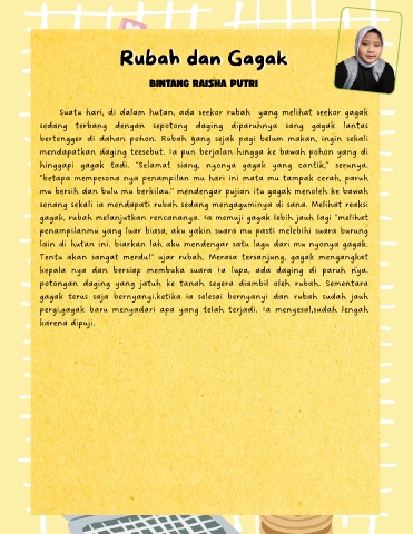 Suatu hari, di dalam hutan, ada seekor rubah yang melihat seekor gagak