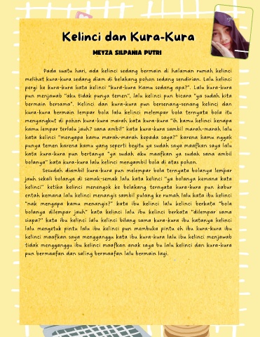 pun menjawab “aku tidak punya temen”, lalu kelinci pun bicara “ya sudah kita