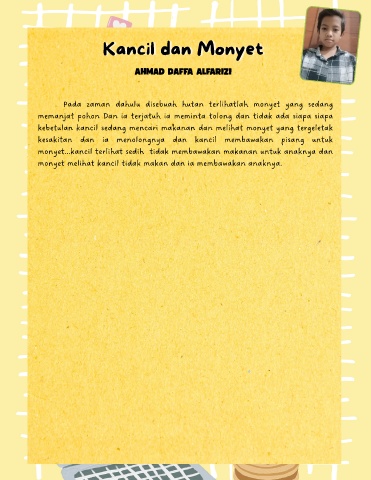 monyet melihat kancil tidak makan dan ia membawakan anaknya.