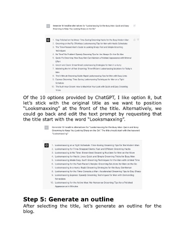 After selecting the title, let’s generate an outline for the
