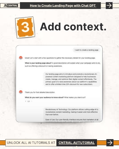 How to Create Landing Page with Chat GPT 3 Add context. UNLOCK ALL AI TUTORIALS AT CNTRAL.AI/TUTORIAL S