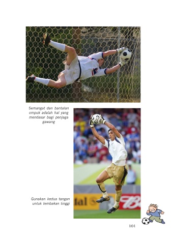 Semangat dan bantalan empuk adalah hal yang mendasar bagi penjaga gawang Gunakan kedua tangan untuk tembakan tinggi 101