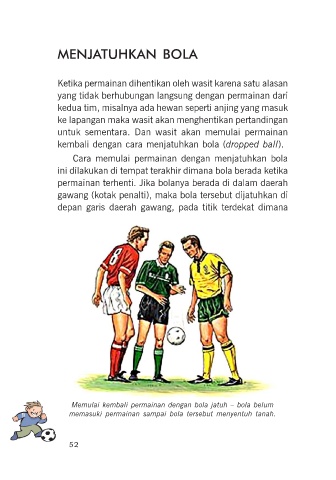 kembali dengan cara menjatuhkan bola (dropped ball).