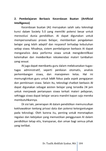 2. Pembelajaran Berbasis Kecerdasan Buatan (Artificial