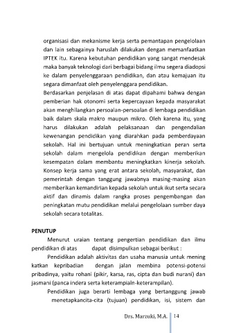 ke dalam penyelenggaraan pendidikan, dan atau kemajuan itu