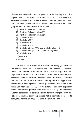 Perubahan bentuk-bentuk kurikulum tentunya juga membawa