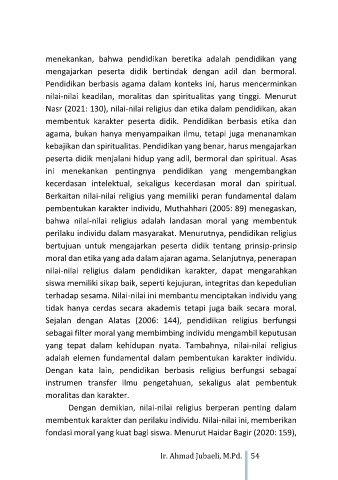 Nasr (2021: 130), nilai-nilai religius dan etika dalam pendidikan, akan