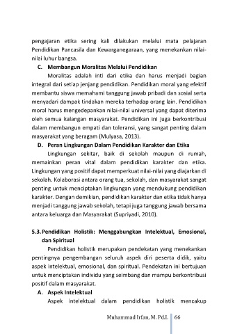 pengajaran  etika  sering  kali  dilakukan  melalui  mata  pelajaran