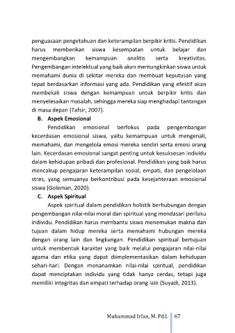 penguasaan pengetahuan dan keterampilan berpikir kritis. Pendidikan
