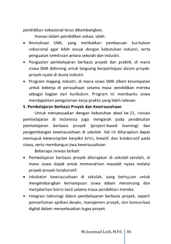 vokasional agar lebih sesuai dengan kebutuhan industri, serta
