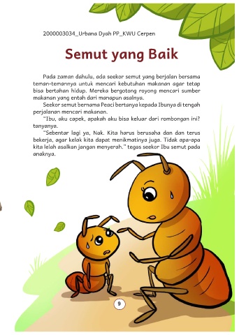 Seekor semut bernama Peaci bertanya kepada Ibunya di tengah