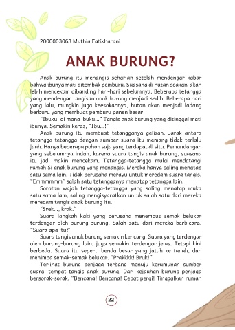 yang mendengar tangisan anak burung menjadi sedih. Beberapa hari
