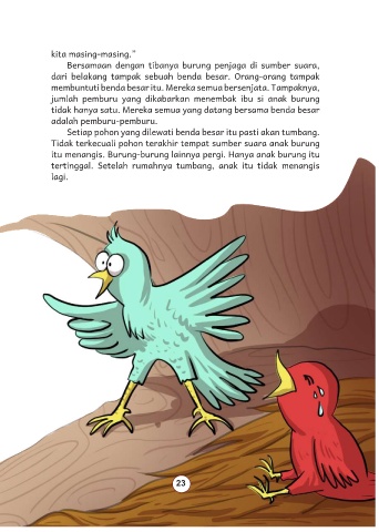 itu menangis. Burung-burung lainnya pergi. Hanya anak burung itu