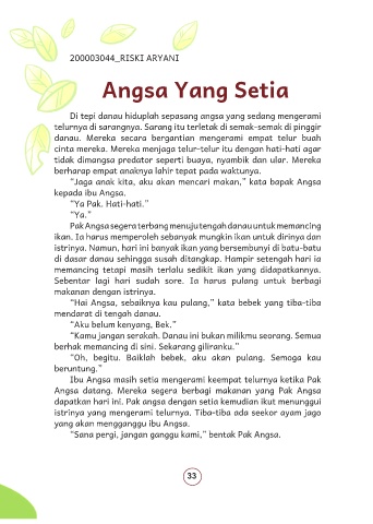 “Hai Angsa, sebaiknya kau pulang,” kata bebek yang tiba-tiba