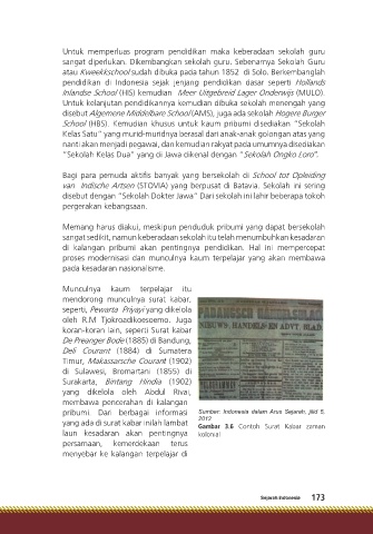 School (HBS). Kemudian khusus untuk kaum pribumi disediakan “Sekolah