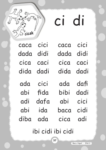 ci di cicak caca cici caca cici dada didi dada didi cica caci cica caci dida dadi dida dadi ada cici ada dafi abi fida bibi dadi adi dafa abi cici abi ida baca cidi diba ada cica adi ibi cidi ibi cidi 37 Baca Cepat - Jilid 2