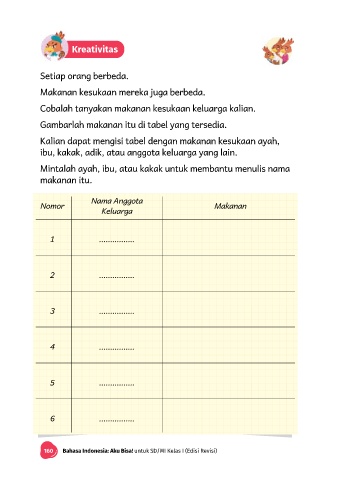 Kalian dapat mengisi tabel dengan makanan kesukaan ayah,