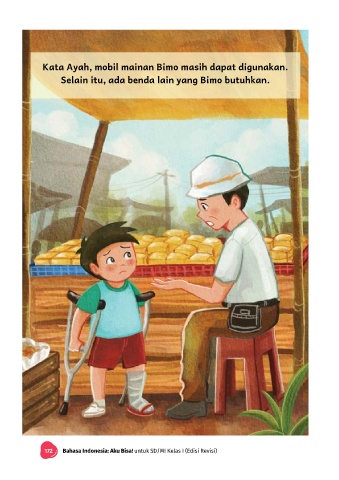 Kata Ayah, mobil mainan Bimo masih dapat digunakan. Selain itu, ada benda lain yang Bimo butuhkan. 172 Bahasa Indonesia: Aku Bisa! untuk SD/MI Kelas I (Edisi Revisi)