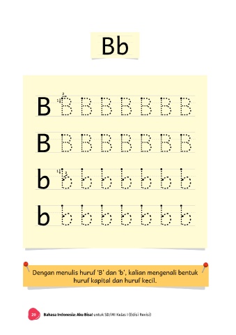 Bb 2 B 1 B b 1 2 b Dengan menulis huruf ‘B’ dan ‘b’, kalian mengenali bentuk huruf kapital dan huruf kecil. 20 Bahasa Indonesia: Aku Bisa! untuk SD/MI Kelas I (Edisi Revisi)